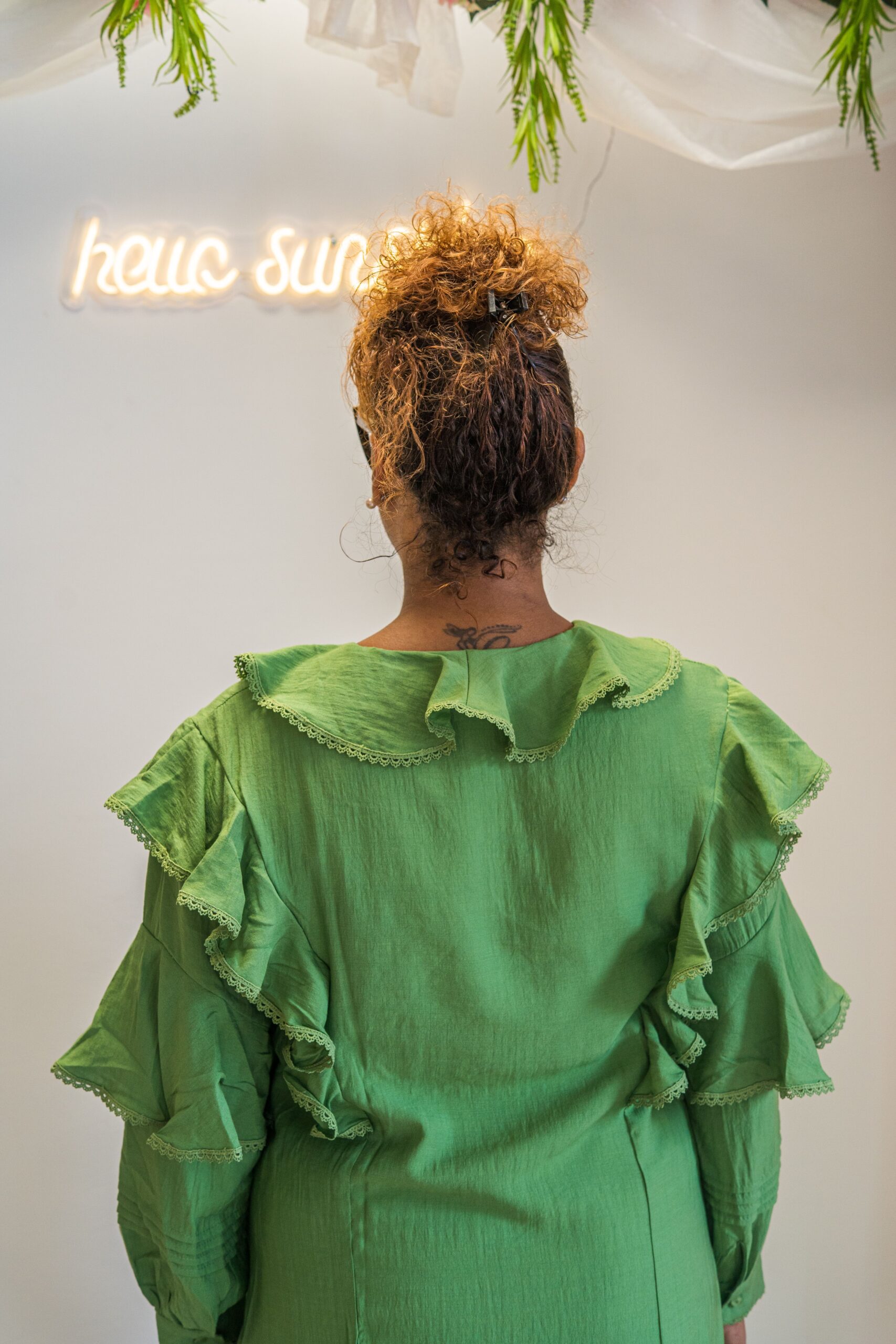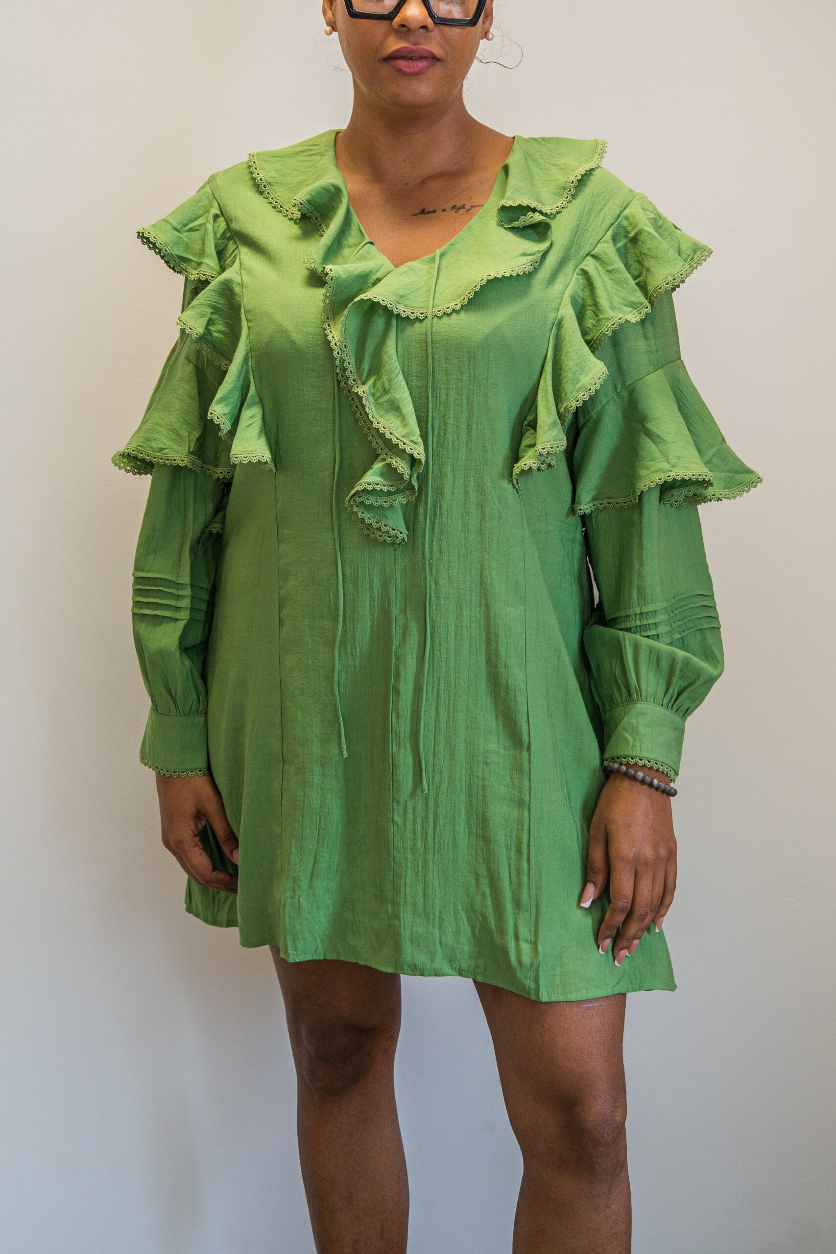 49.99€Description du produit : Apportez une touche de fraîcheur et d’élégance à votre garde-robe avec notre robe à volants vert prairie. Cette robe se distingue par ses détails délicats en dentelle et ses volants qui ajoutent du mouvement et de la féminité à votre look.